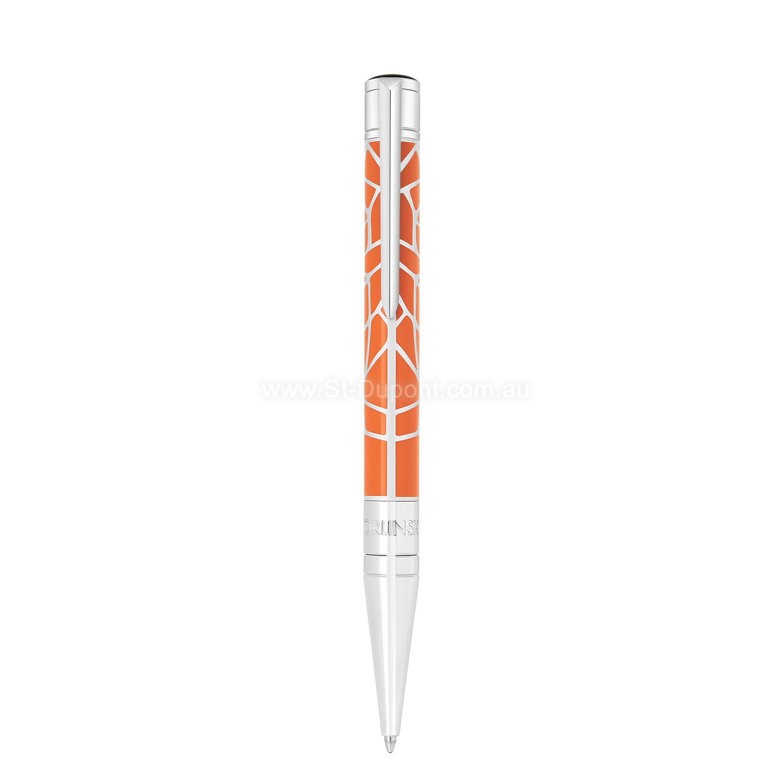 S.T. Dupont partners with French artist Richard Orlinski for an exclusive collection where the power of sculptural gestures meets the precision of artisanal craftsmanship. Inspired by the iconic “Kong” motif and the wildness of nature, this collaboration brings a raw, contemporary energy to the Maison’s creations. Lighters and writing instruments become true works of art, enhanced by angular lines, contrasting textures, and vibrant colors. Initial ballpoint pen in orange lacquer decorated with the Orlinski “Kong” motif. Chrome finishes. Made in China. Associated refills: 040853 Blue – 040854 Black – 040358 Pink – 040359 Red – 040360 Green – 040361 Turquoise